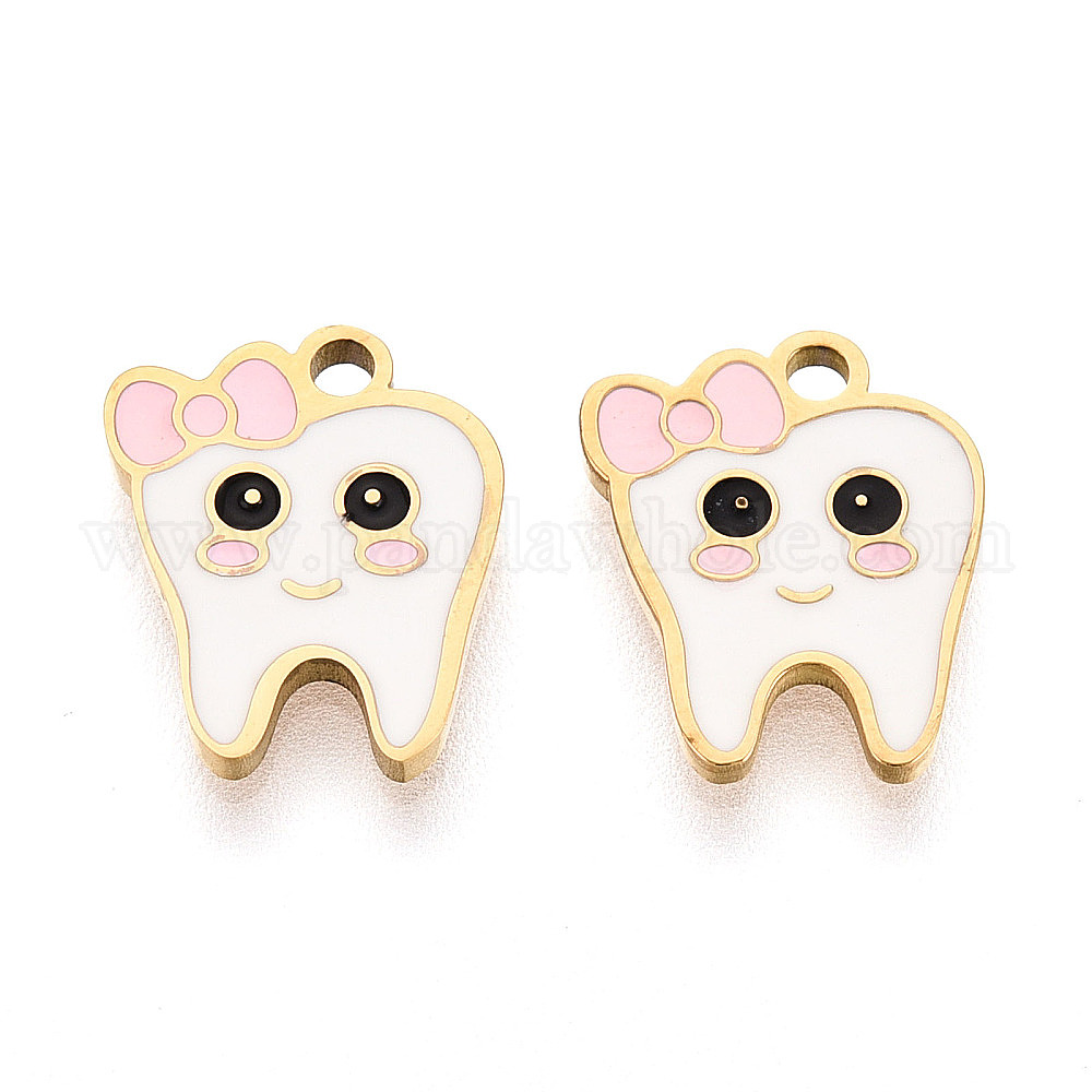 304 нержавеющей стальной эмали подвески, зубные чары, ионное покрытие (ip), реальный 18 k позолоченный