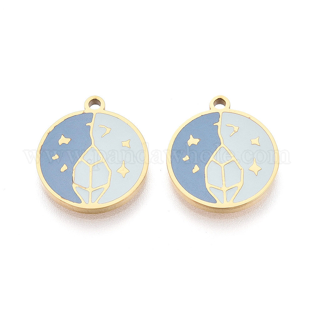 304 нержавеющей стальной эмали подвески, плоские круглые прелести, ионное покрытие (ip), реальный 18 k позолоченный