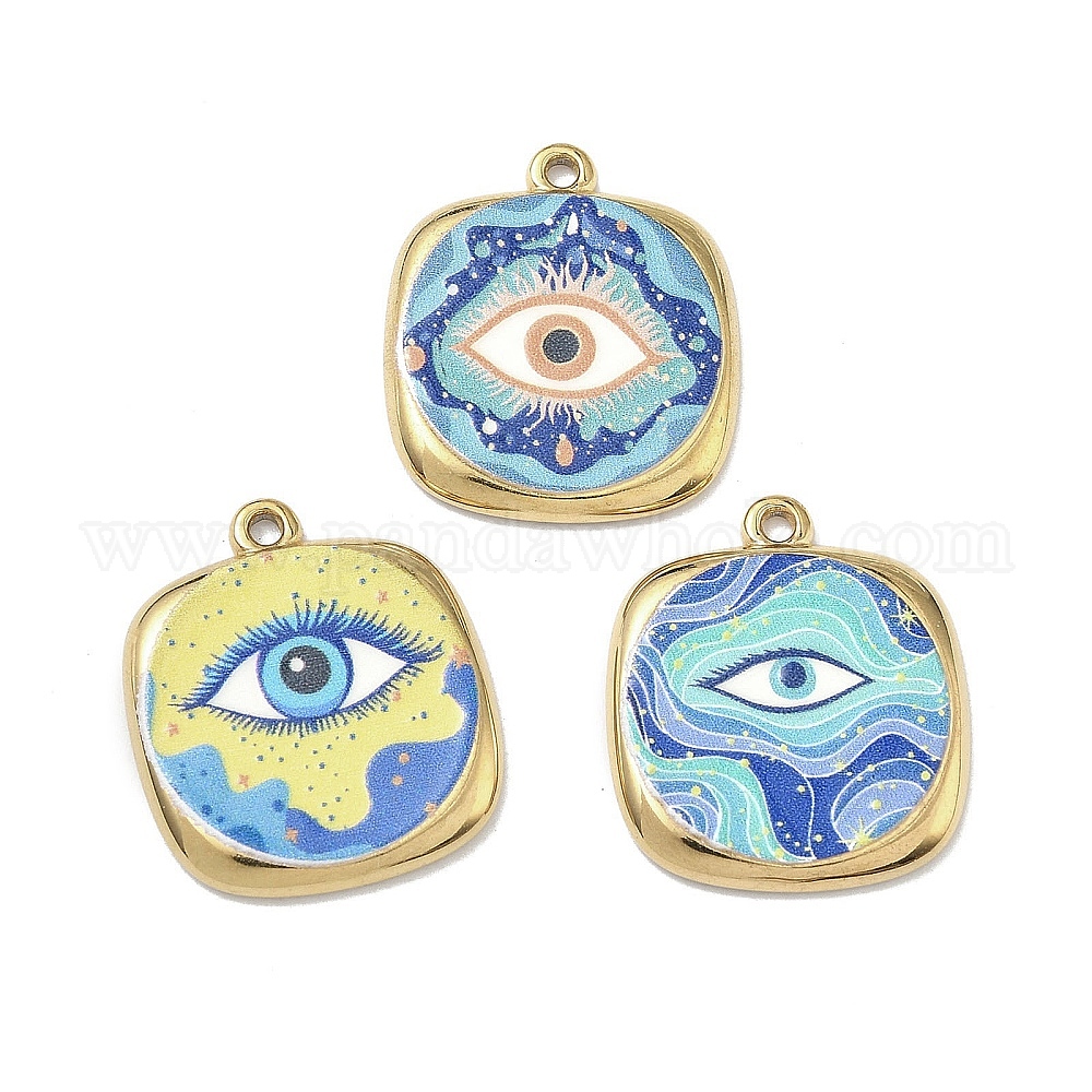 304 нержавеющей стальной эмали подвески, квадрат с амулетами от сглаза, ионное покрытие (ip), реальный 18 k позолоченный