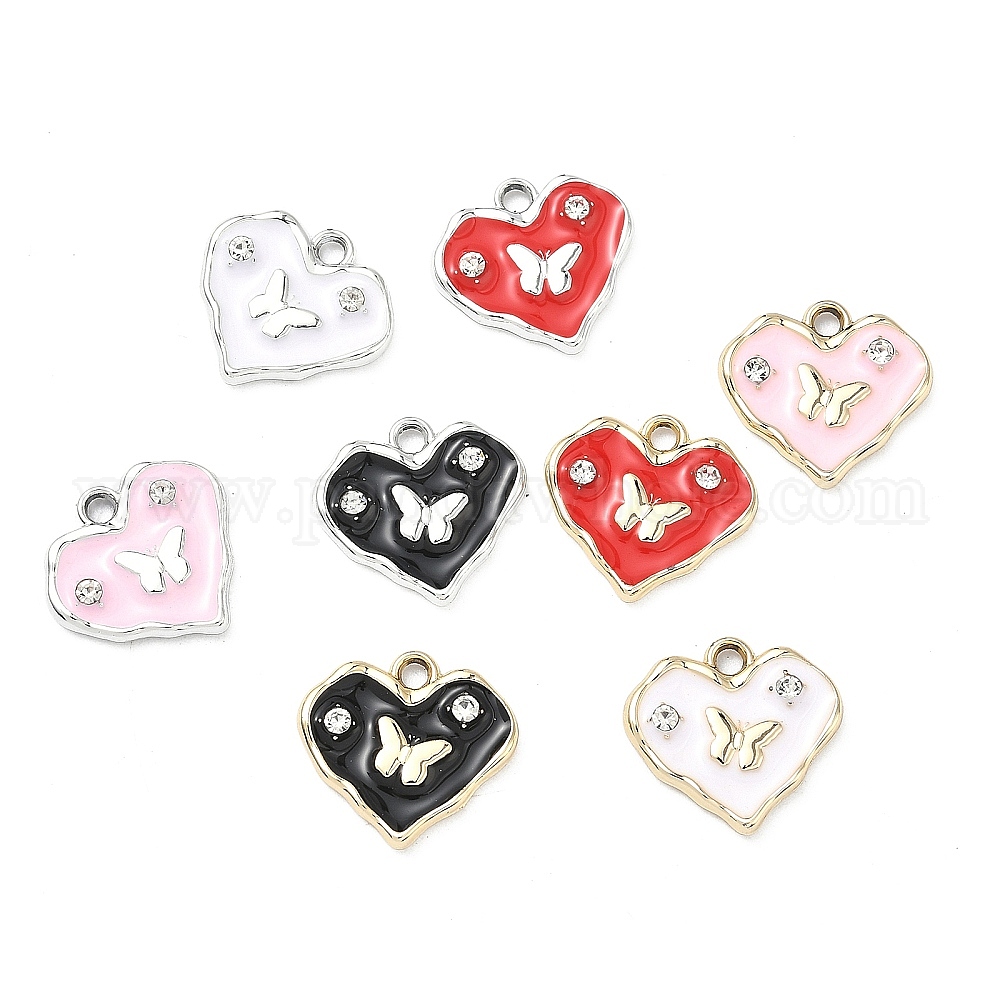 Подвески из эмали и сплава, сердце с подвесками в виде бабочек, uv покрытие, со стразами
