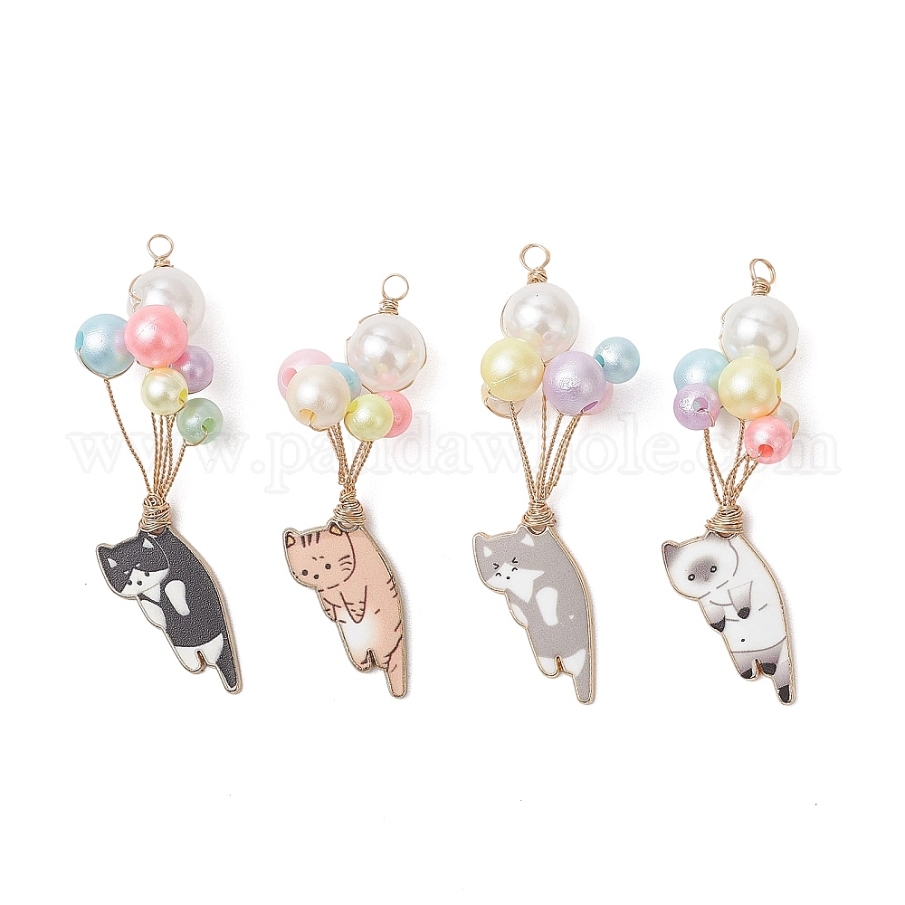 Большие подвески из акрила и сплава с имитацией жемчуга и эмалью., Воздушный шар с подвесками в виде кошек (03A9XG)