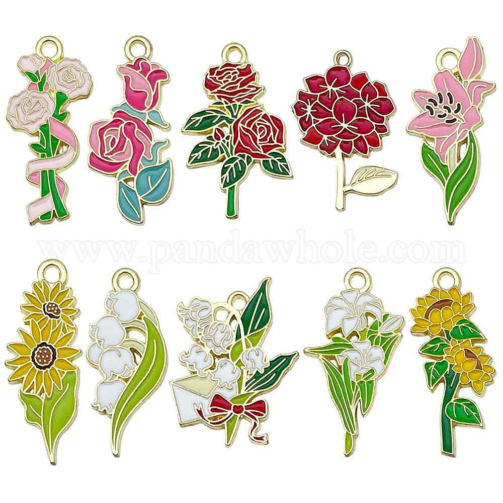 10 шт 10 стили подвески из сплава эмали, подвески в форме цветов, золотые