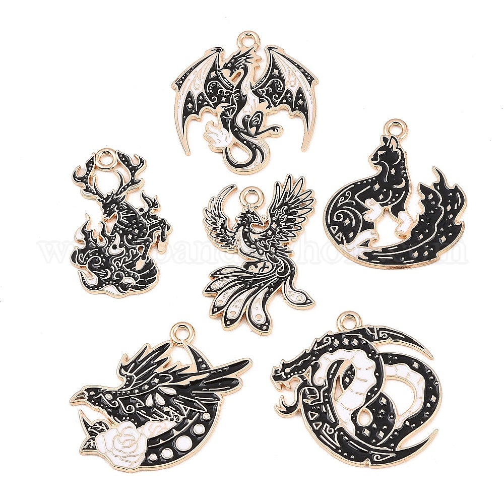 6 шт 6 стили подвески из сплава эмали, животные прелести, золотой свет
