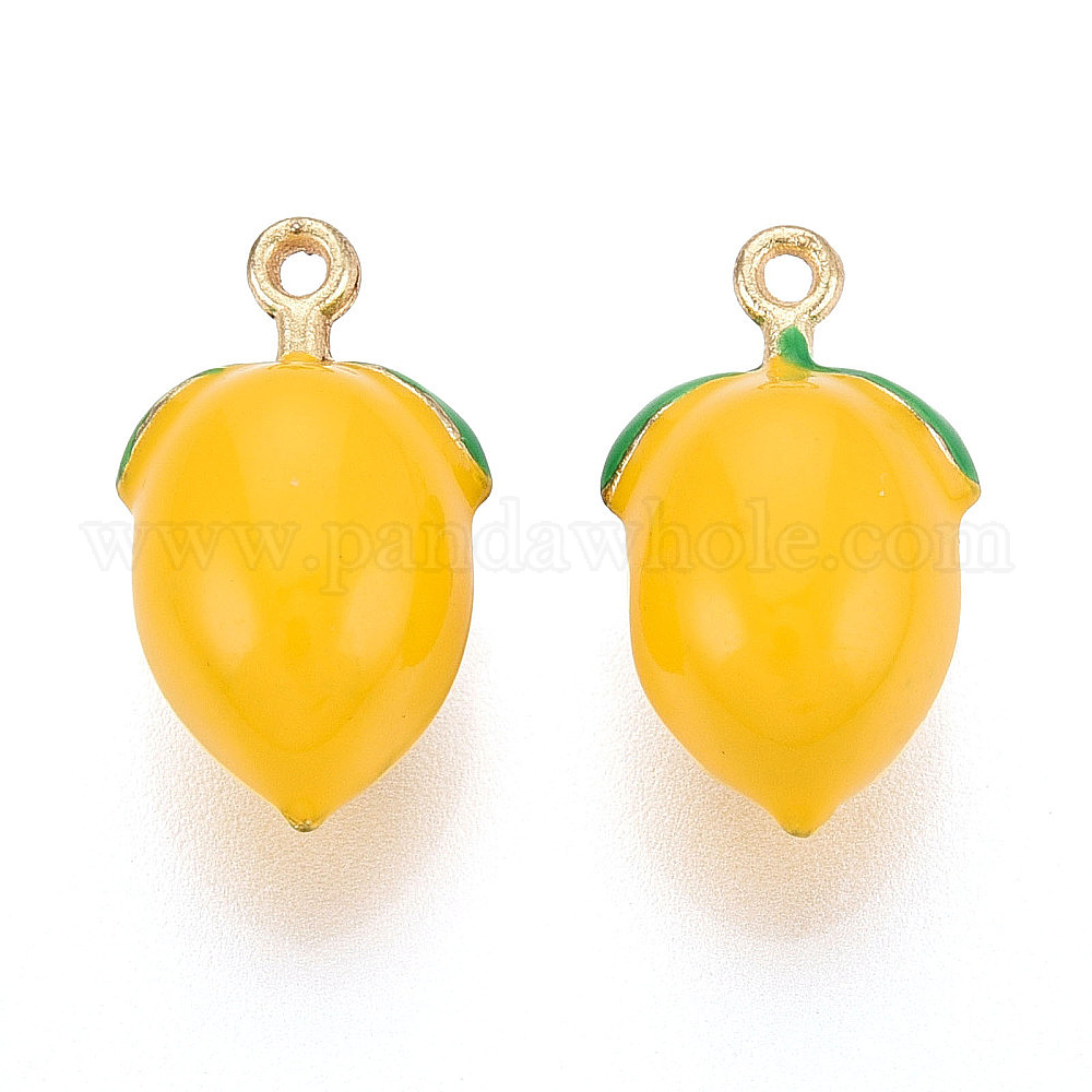 • Золотистый Стойки обшивки сплава эмали подвески, лимонные прелести, без кадмия, без никеля и без свинца, золотые, золотые, 18.5x11x9.5 мм, отверстие : 1.2 мм