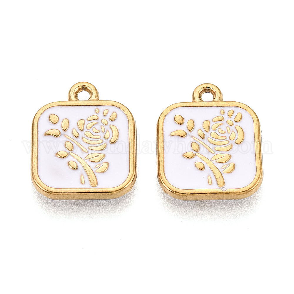 304 нержавеющей стальной эмали подвески, квадратные и цветочные подвески, ионное покрытие (ip), реальный 18 k позолоченный