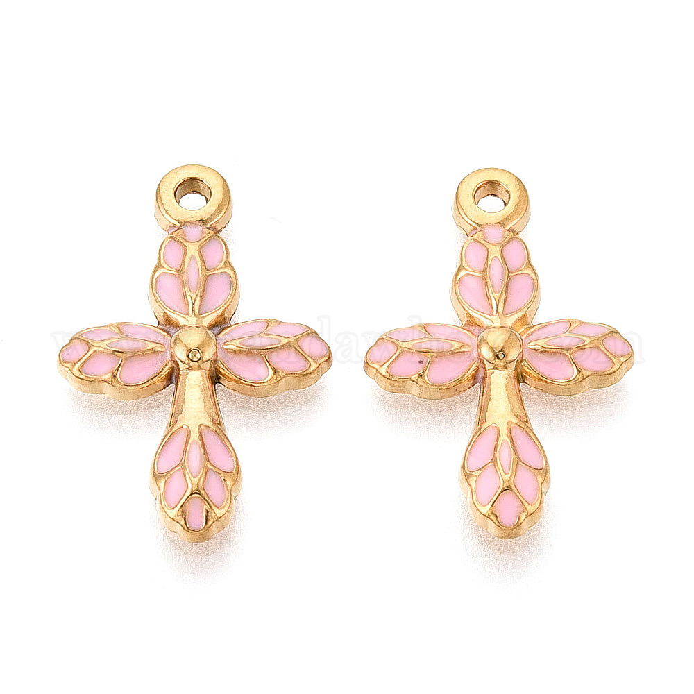 304 нержавеющей стальной эмали подвески, крест прелести, ионное покрытие (ip), реальный 18 k позолоченный