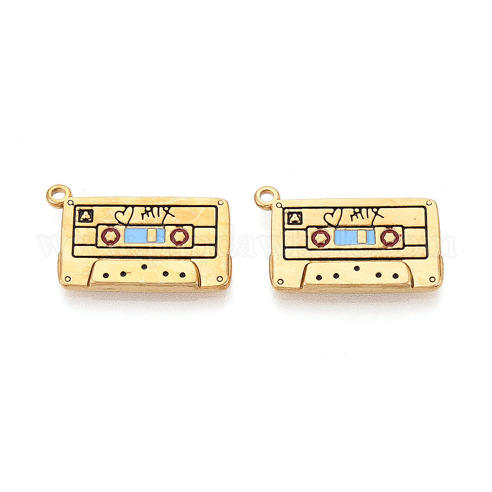 • Разноцветный 304 нержавеющей стальной эмали подвески, ленточные подвески, ионное покрытие (ip), реальный 18 k позолоченный, красочный, 13x20.5x2 мм, отверстие : 1.3 мм