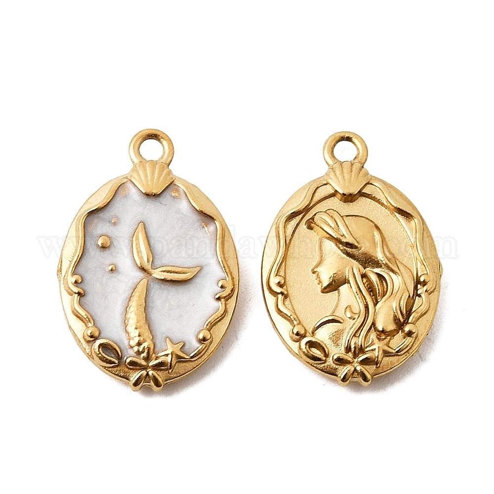 • Золотой 304 нержавеющей стальной эмали подвески, овальный с подвесками в виде русалок, ионное покрытие (ip), золотые, 18x12x3.5 мм, отверстие : 1.5 мм