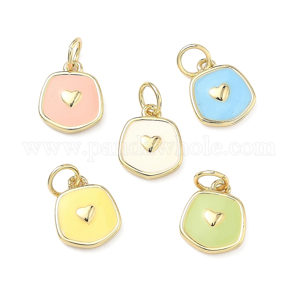 • (52) Непрозрачная лаванда Латунь эмаль подвески, самородки с подвесками в виде сердечек, долговечный, стойки покрытие, без свинца и без кадмия, реальный 18 k позолоченный, разноцветные, 11x9x2 мм, отверстие : 3 мм, Перейти кольцо: 5x1 мм