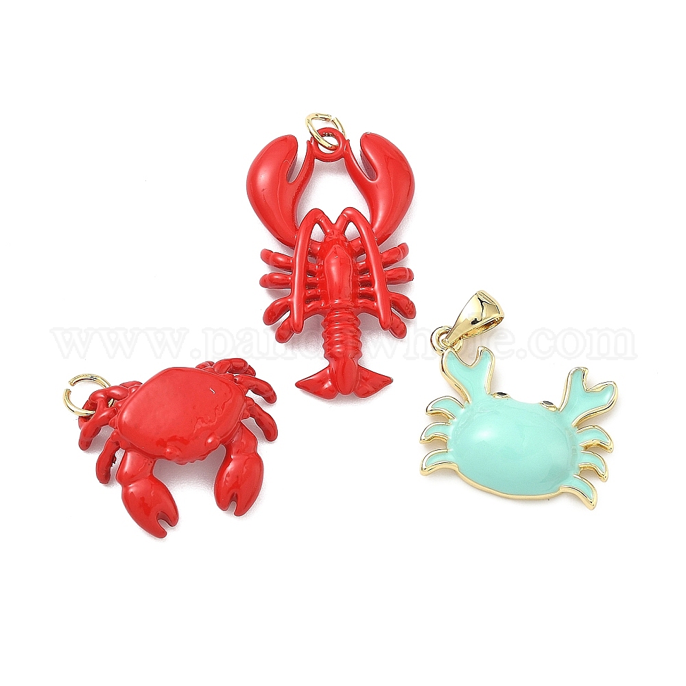 Латунь эмаль подвески, амулеты в виде крабов/омаров, без кадмия и без свинца, долговечный, стойки покрытие, реальный 18 k позолоченный