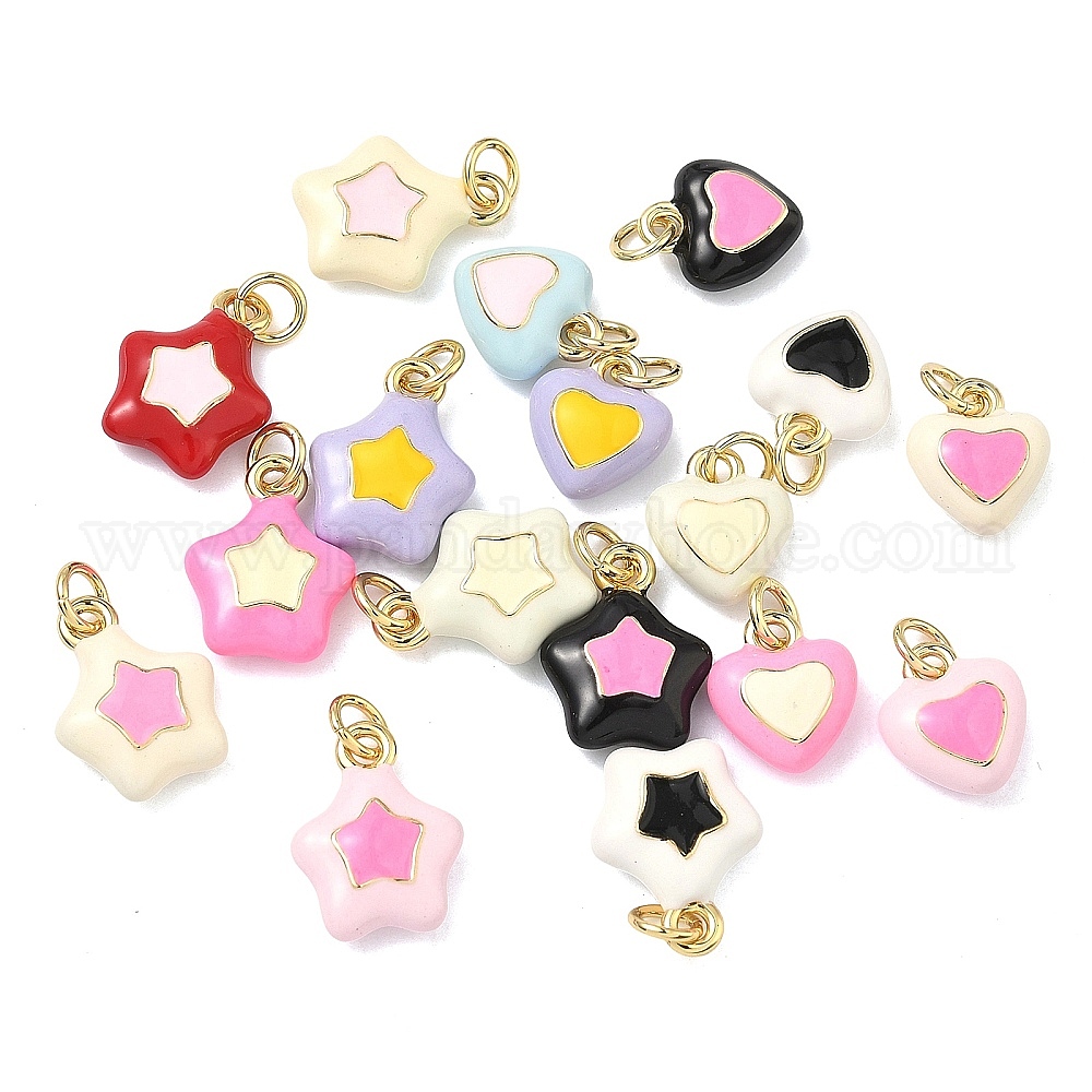 Латунь эмаль подвески, Подвески в виде звезды/сердца, долговечный, стойки покрытие, без свинца и без кадмия, реальный 18 k позолоченный