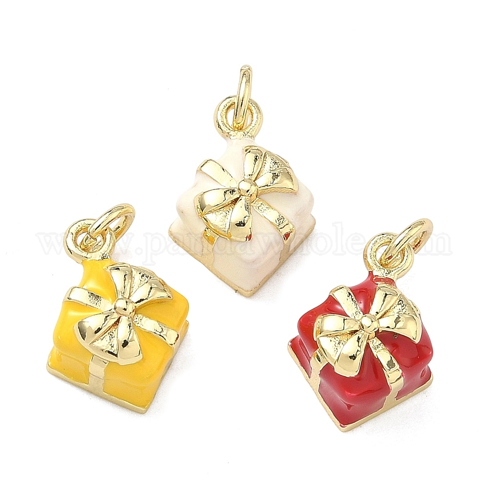 Латунь эмаль подвески, коробка подарка прелести, долговечный, стойки покрытие, без свинца и без кадмия, реальный 18 k позолоченный