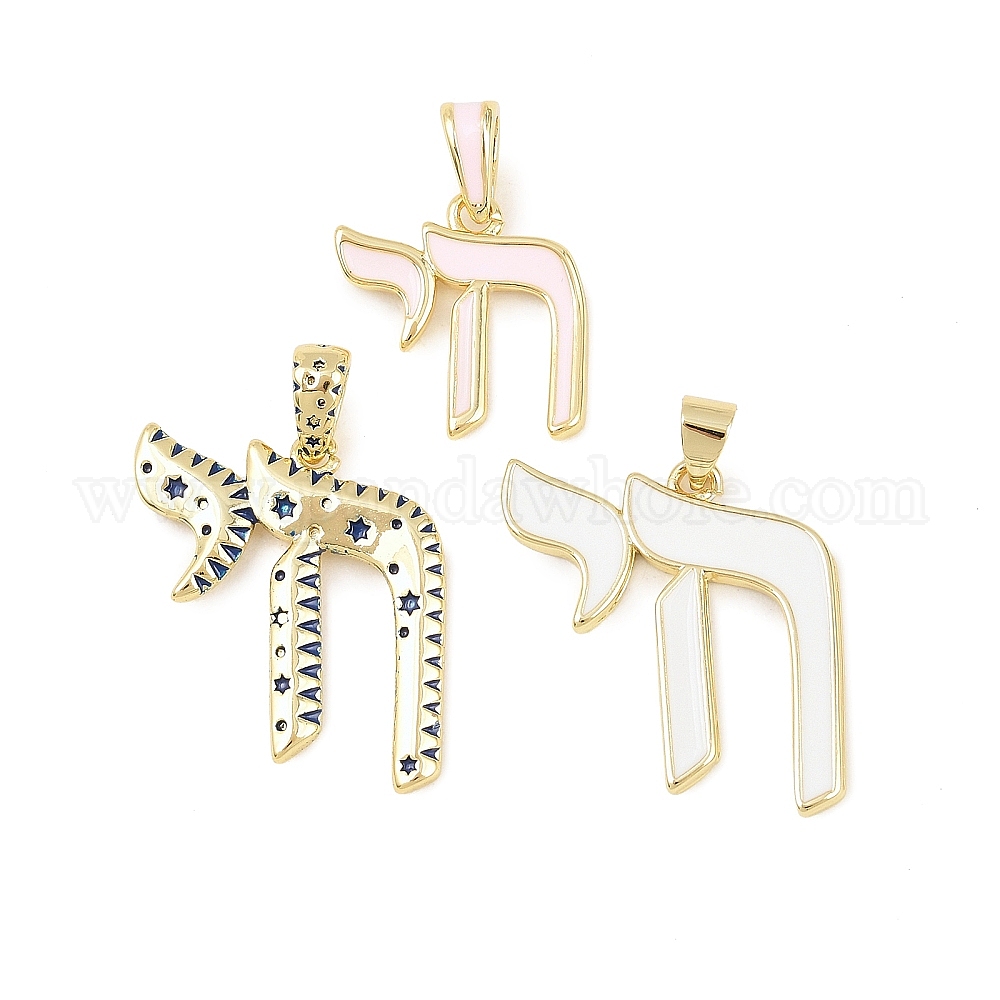 Латунь эмаль подвески, еврейский символ чая амулеты, долговечный, стойки покрытие, без свинца и без кадмия, реальный 18 k позолоченный (03AN78)