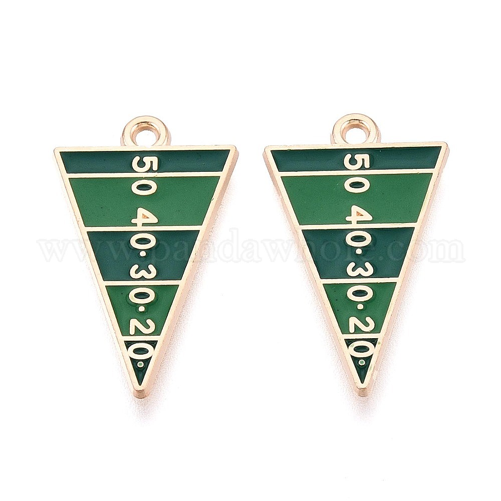 • Морско-зеленый Подвески из эмали и сплава, Треугольник с разметкой футбольного поля., золотые, цвета морской волны, 25x15x1 мм, отверстие : 1.6 мм