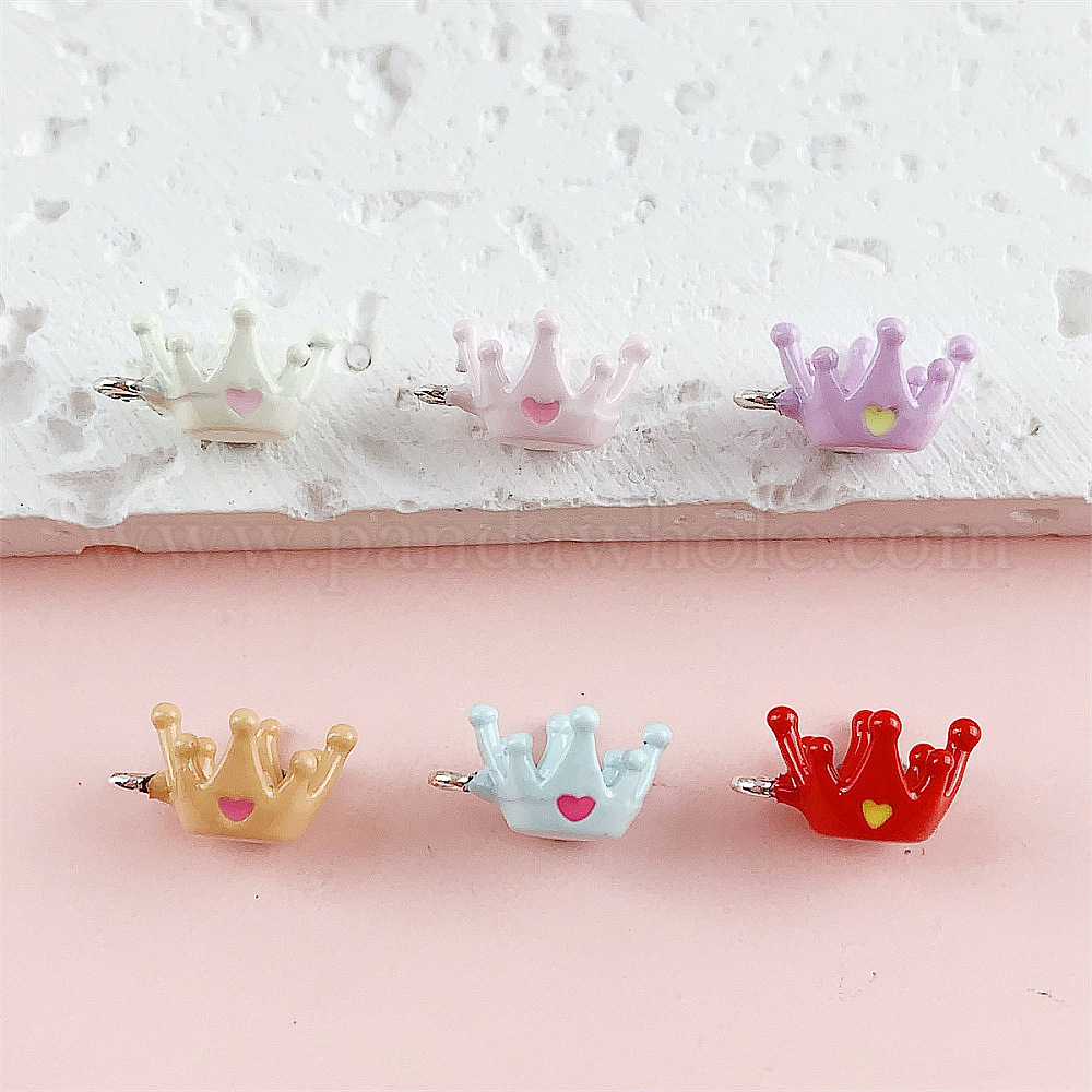 • (52) Непрозрачная лаванда Подвески из эмали и сплава, корона с сердечками, платина, разноцветные, 13x11.5x7 мм, отверстие : 1.4 мм