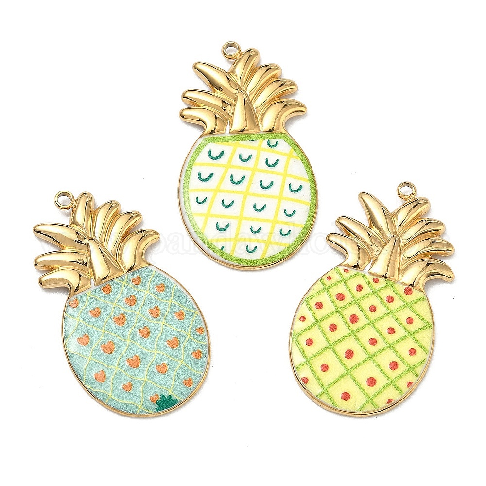 304 подвески из нержавеющей стали, с эмалью, ананасовые прелести, вакуумное покрытие pvd, реальный 18 k позолоченный
