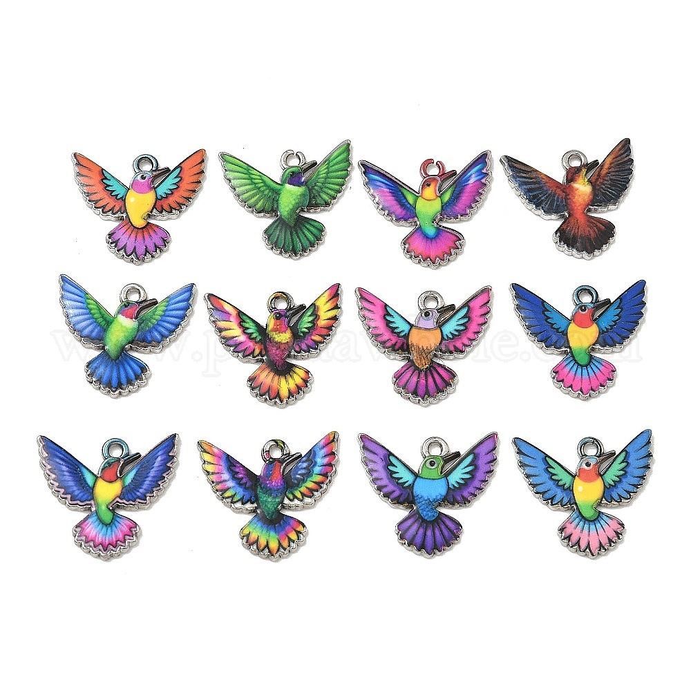 • (52) Непрозрачная лаванда Подвески из эмали и сплава, амулеты птиц, золотые, разноцветные, 18.5x20.5x1.5 мм, отверстие : 1.8 мм