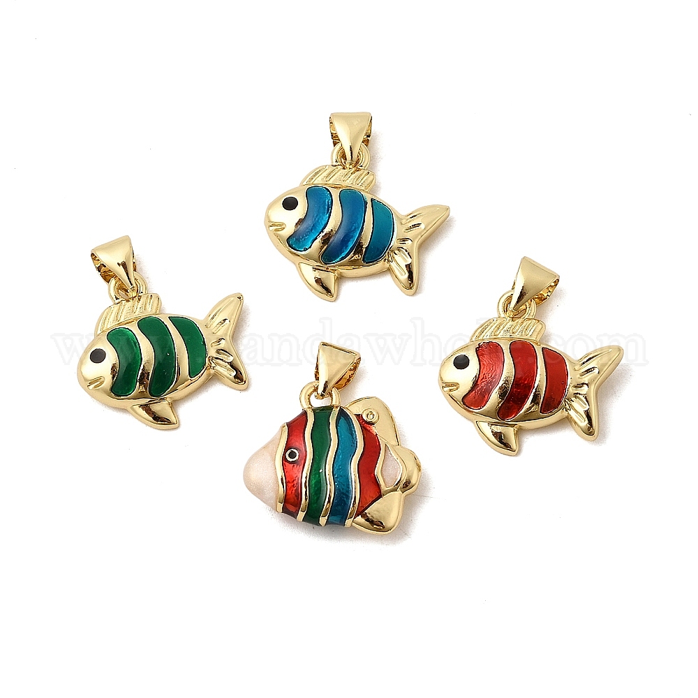 Латунь эмаль подвески, рыбы прелести, с целью перехода в кольце, реальный 18 k позолоченный, долговечный, стойки покрытие, без свинца и без кадмия (03AXYP)