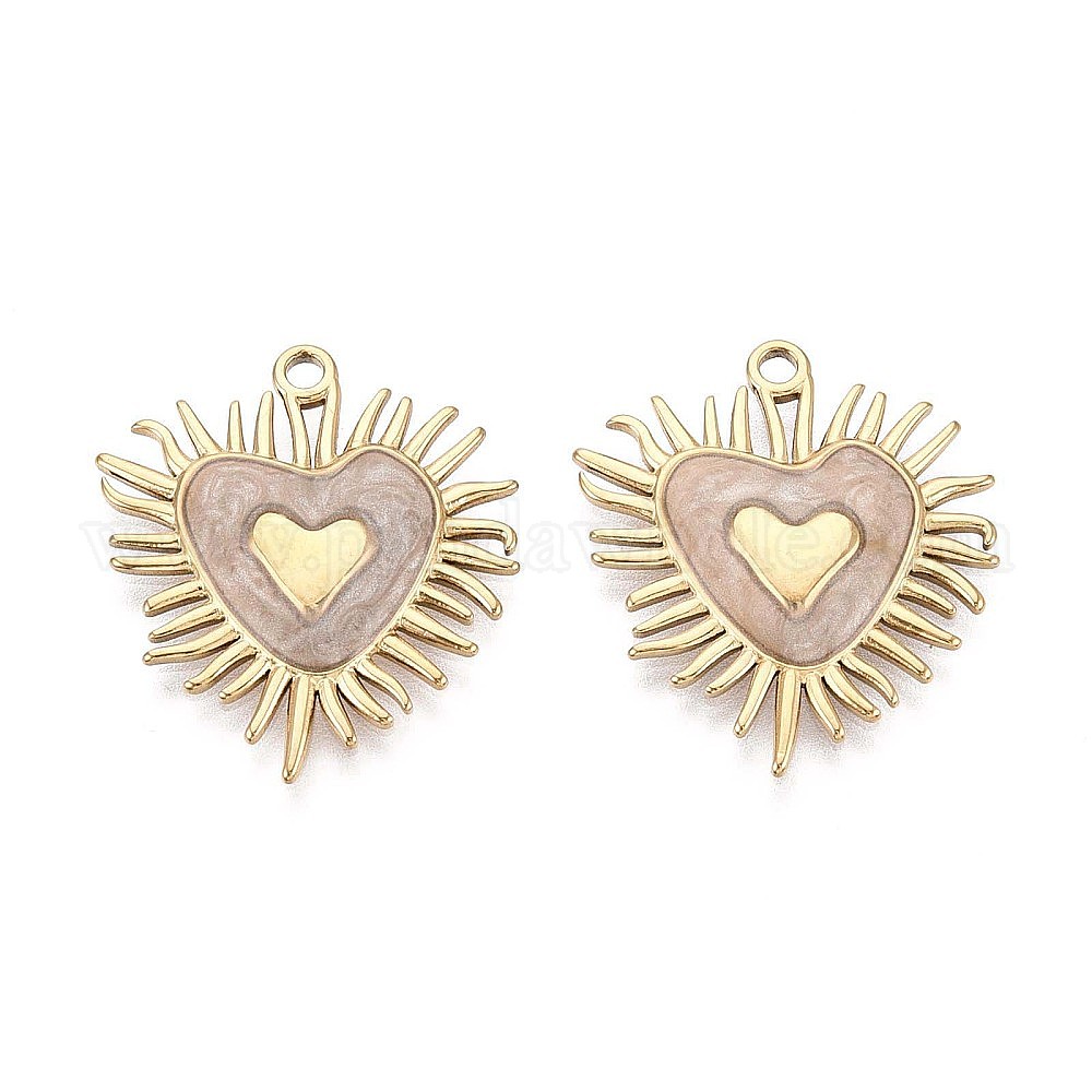 • Светло-коричневый 304 подвески из нержавеющей стали и эмали, сердце прелести, ионное покрытие (ip), реальный 18 k позолоченный, загар, 24~24.5x21x2 мм, отверстие : 1.6 мм