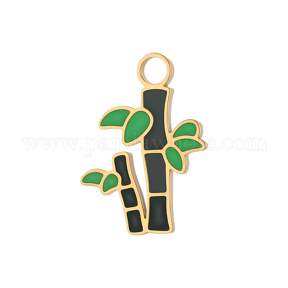 • Настоящее золото 18K 304 нержавеющей стальной эмали подвески, бамбуковые прелести, ионное покрытие (ip), долговечный, реальный 18 k позолоченный, 18x13 мм, отверстие : 2.5 мм