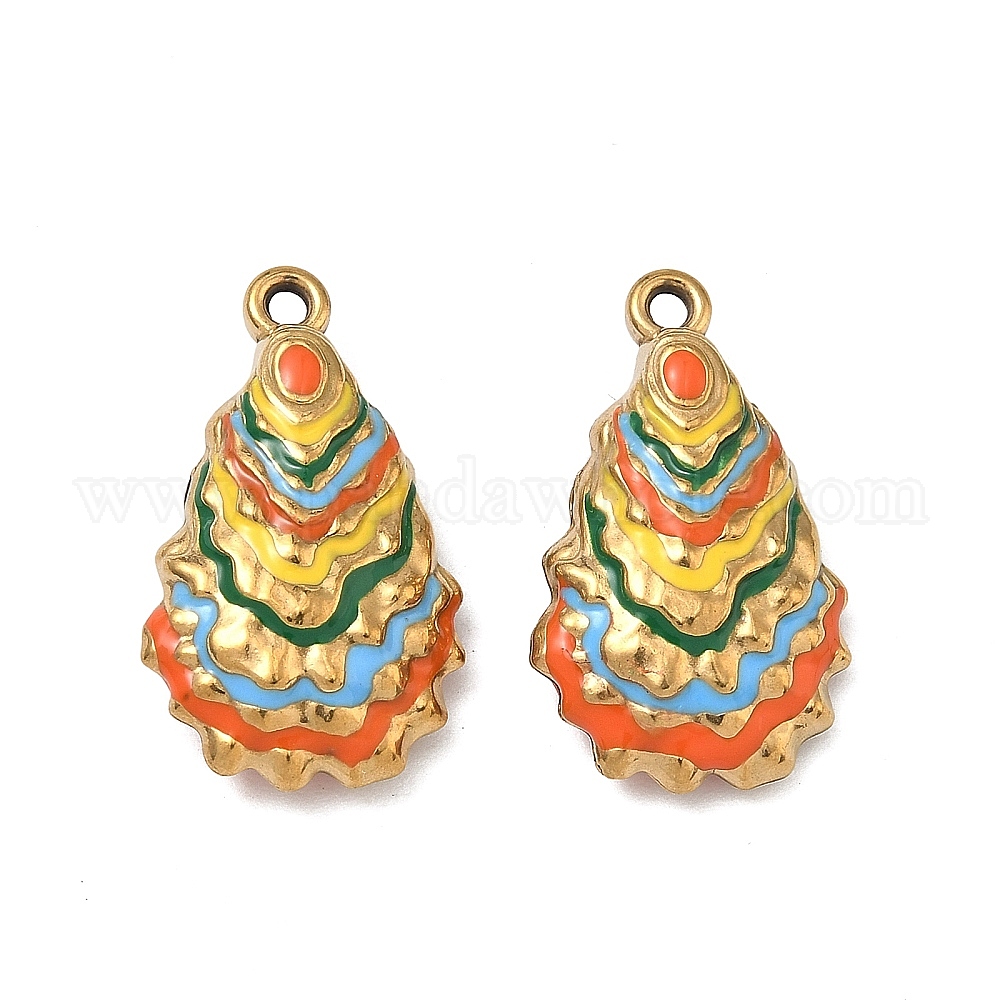 • Разноцветный 304 нержавеющей стальной эмали подвески, подвески в форме ракушек, ионное покрытие (ip), реальный 18 k позолоченный, красочный, 23.5x14x6 мм, отверстие : 1.6 мм