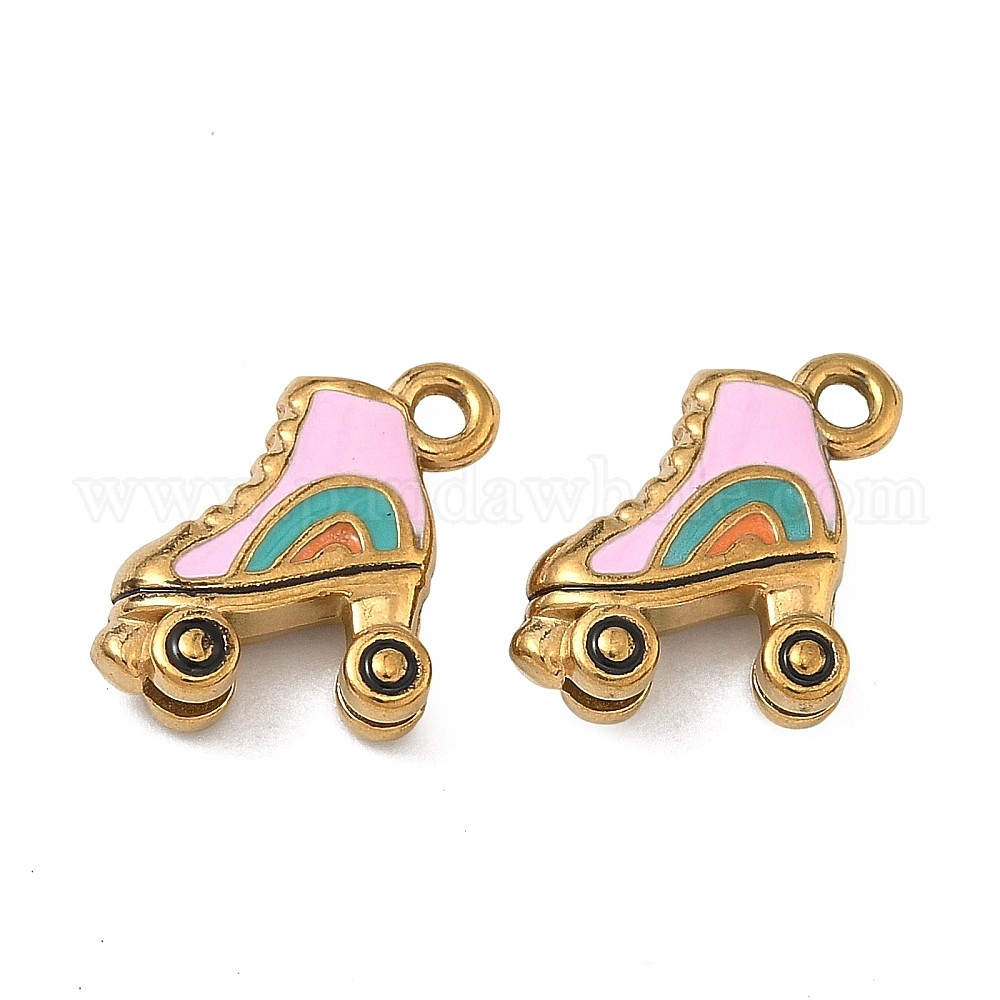304 нержавеющей стальной эмали подвески, брелоки для роликовых коньков, ионное покрытие (ip), реальный 18 k позолоченный