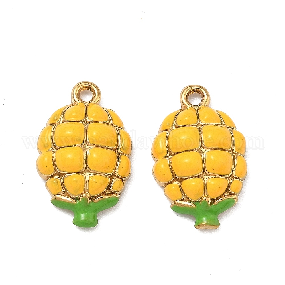 • Желтый 304 нержавеющей стальной эмали подвески, Кукурузные прелести, ионное покрытие (ip), реальный 18 k позолоченный, желтые, 20.5x13x6 мм, отверстие : 1.7 мм
