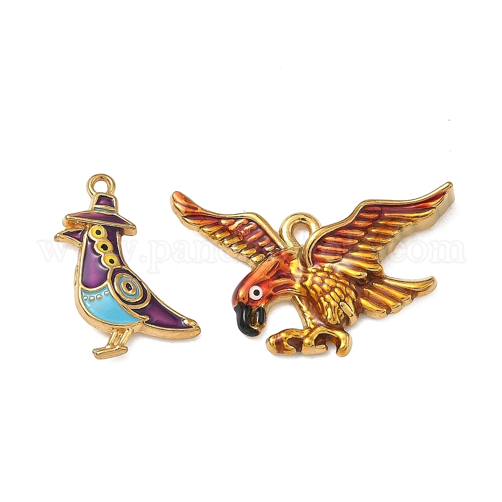 304 нержавеющей стальной эмали подвески, амулеты птиц, ионное покрытие (ip), реальный 18 k позолоченный