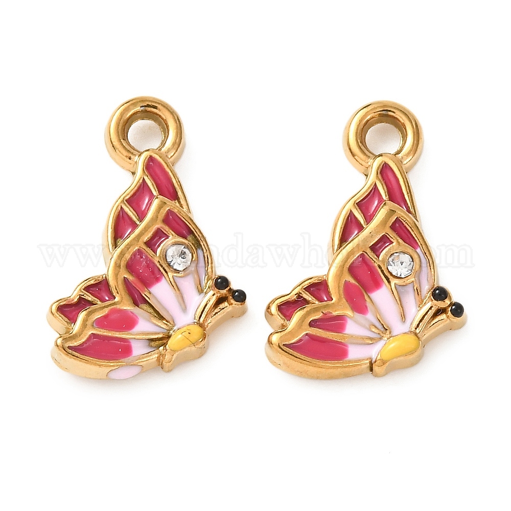 304 нержавеющей стальной эмали подвески, бабочки прелести, со стразами, ионное покрытие (ip)