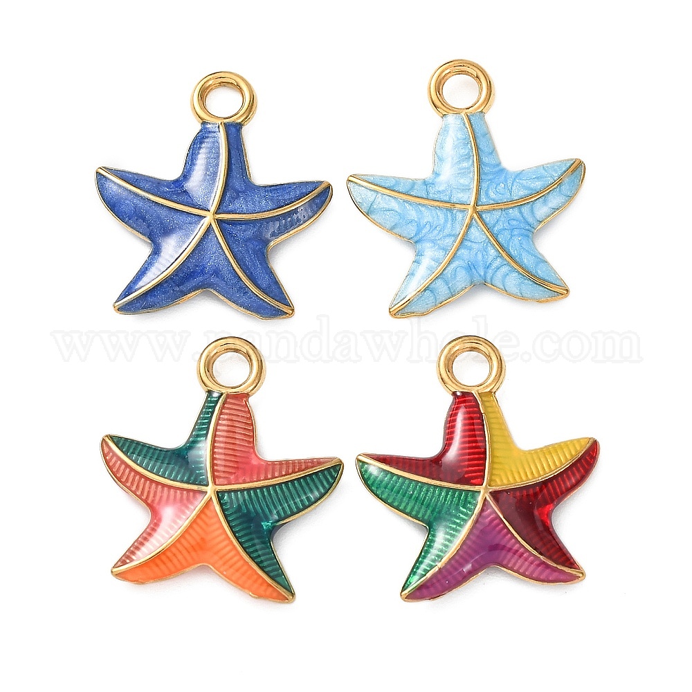 304 нержавеющей стальной эмали подвески, прелести морская звезда, ионное покрытие (ip), реальный 18 k позолоченный