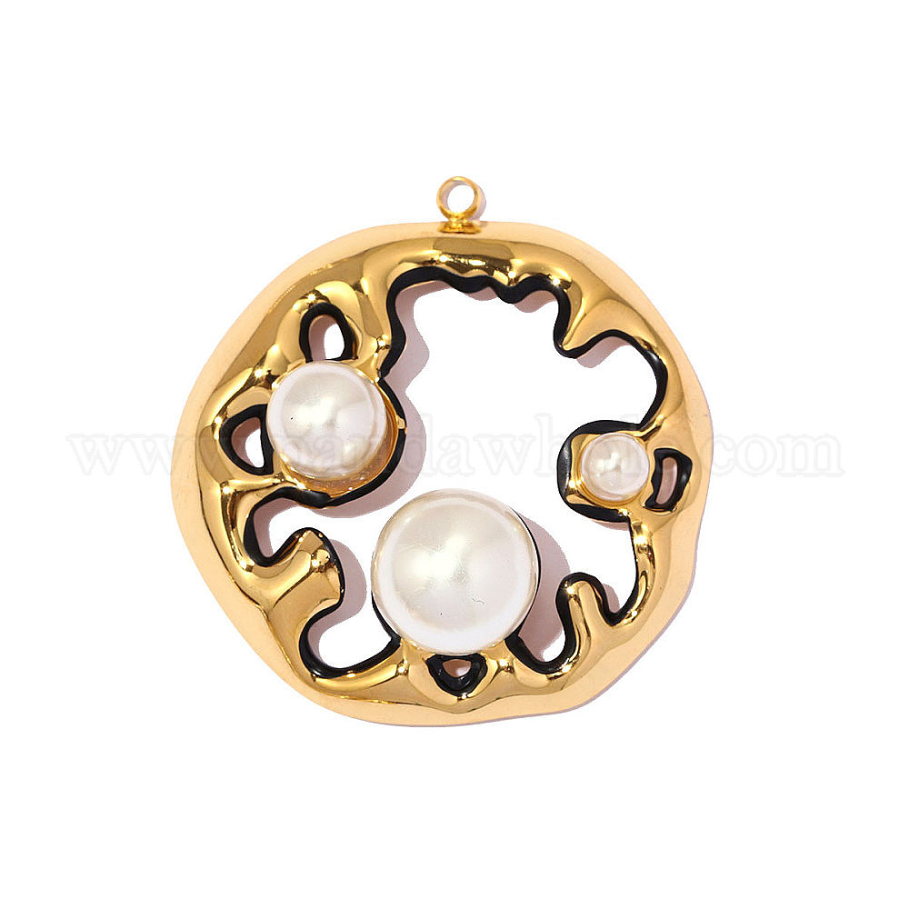 304 нержавеющей стальной эмали подвески, плоский круглый шарм, с ABS имитации жемчуга, ионное покрытие (ip), долговечный, реальный 18 k позолоченный