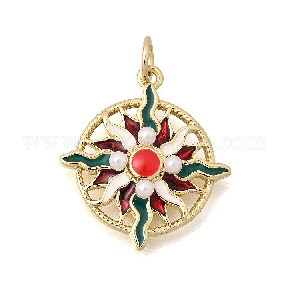 Латунь эмаль подвески, с пластмассовой жемчужиной abs, , без кадмия и без свинца, стойки покрытие, долговечный