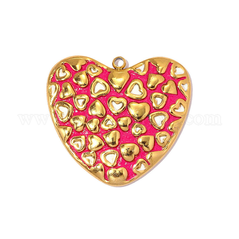 • Ярко-Розовый 304 нержавеющей стальной эмали подвески, шарма сердца, реальный 18 k позолоченный, ионное покрытие (ip), долговечный, ярко-розовый, 29x29 мм, отверстие: 1.60 мм