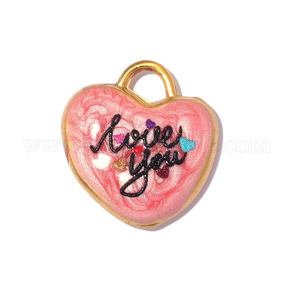 • Светло-Коралловый 304 нержавеющей стальной эмали подвески, сердце со словом люблю тебя очарование, реальный 18 k позолоченный, ионное покрытие (ip), долговечный, свет коралловый, 15x14 мм, отверстие: 3.30 мм
