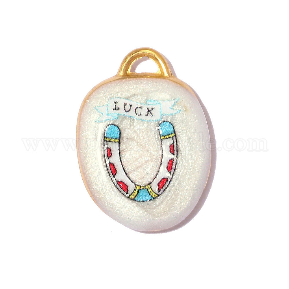 • Белый 304 нержавеющей стальной эмали подвески, овальный талисман в виде подковы на удачу, реальный 18 k позолоченный, ионное покрытие (ip), долговечный, белые, 18x13 мм, отверстие: 2.30 мм