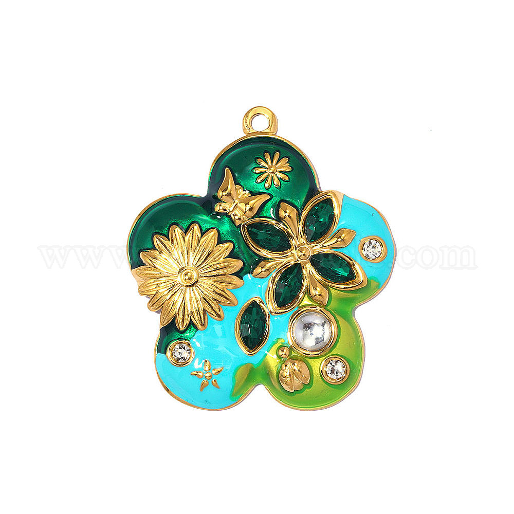 304 нержавеющей стальной эмали подвески, цветочный шарм, с кубического циркония, реальный 18 k позолоченный, ионное покрытие (ip), долговечный