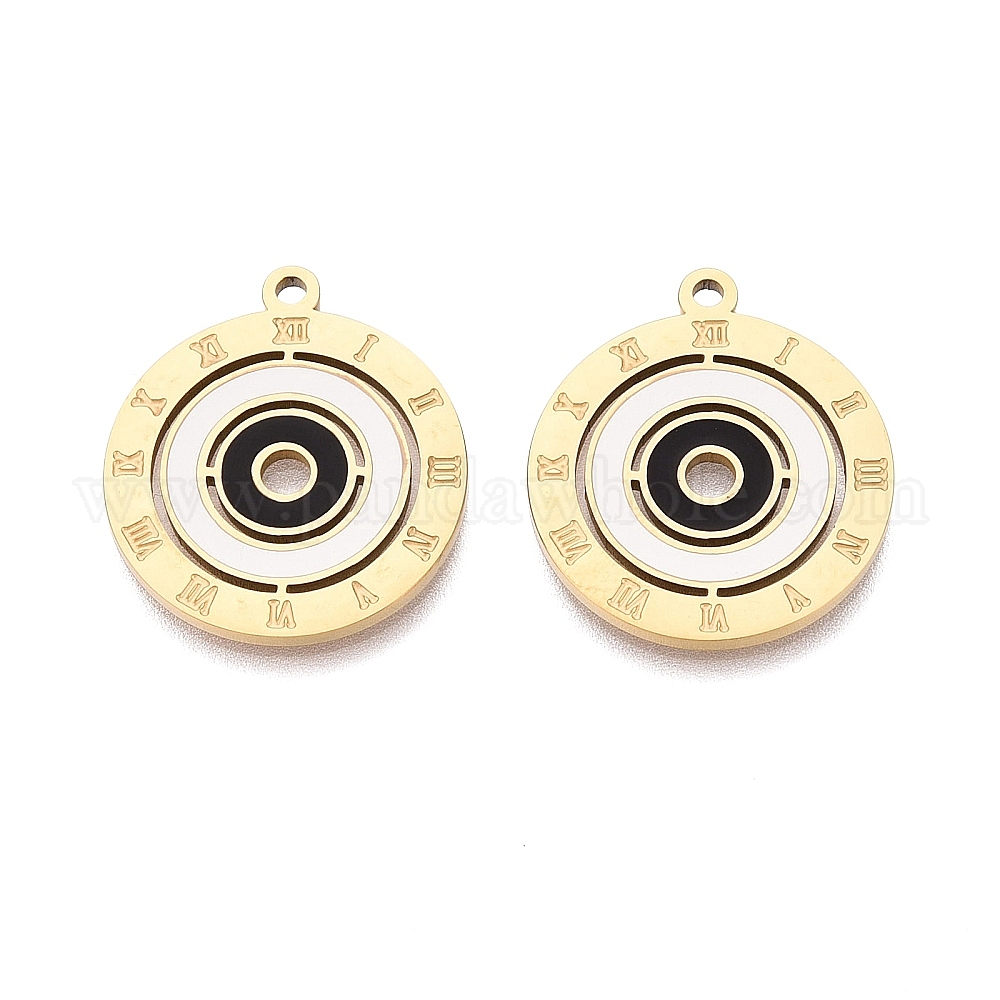 304 нержавеющей стальной эмали подвески, плоская круглая подвеска с римскими цифрами, ионное покрытие (ip), долговечный, золотые