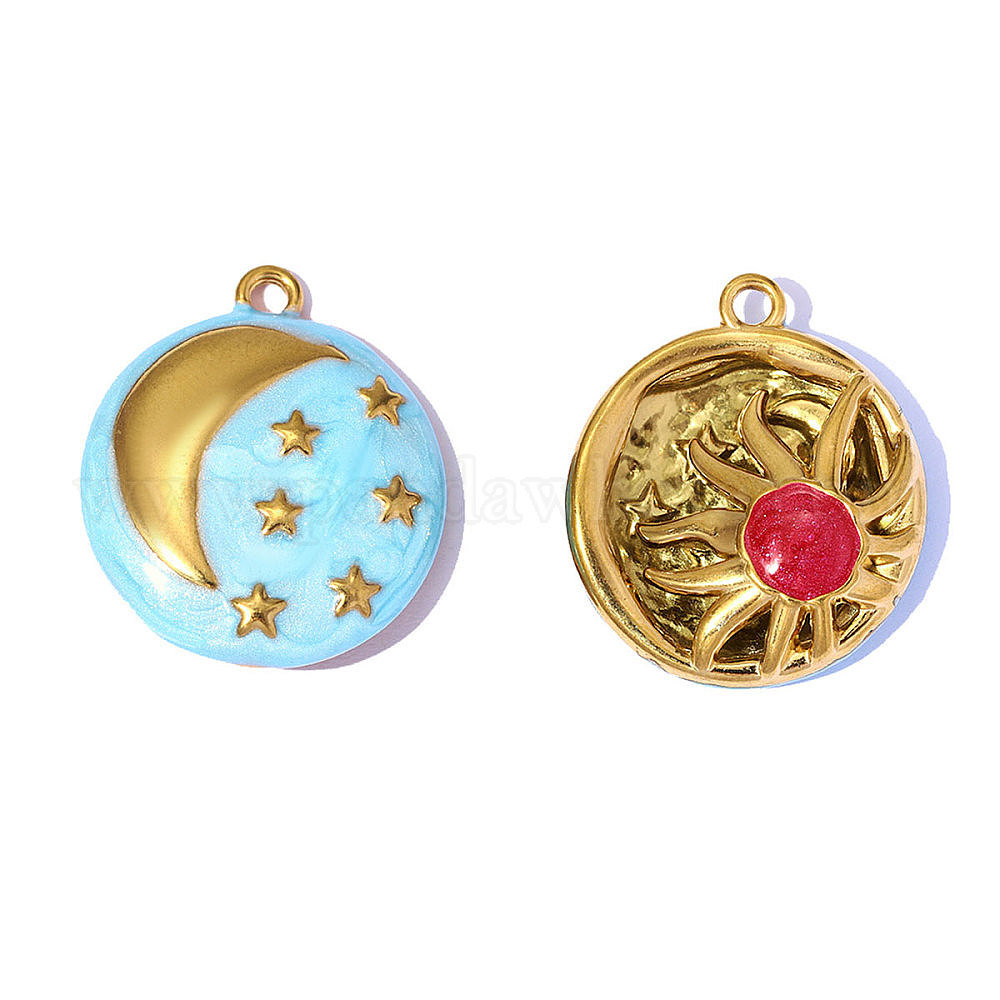304 подвески из нержавеющей стали, с эмалью, плоские круглые прелести, зеркальная полировка, ионное покрытие (ip), реальный 18 k позолоченный