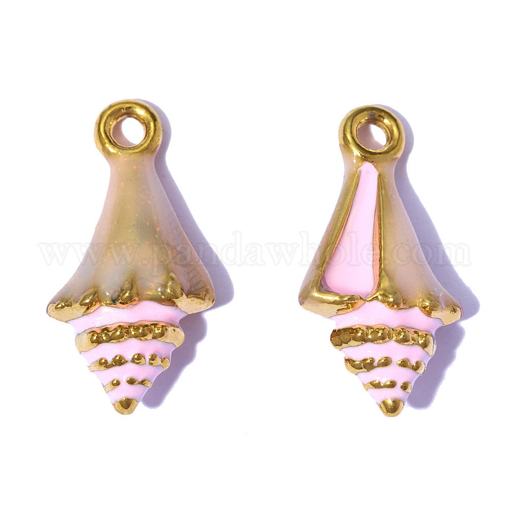 • Pink 304 подвески из нержавеющей стали, с эмалью, раковины прелести, зеркальная полировка, ионное покрытие (ip), реальный 18 k позолоченный, розовые, 21x11 мм, отверстие : 2 мм