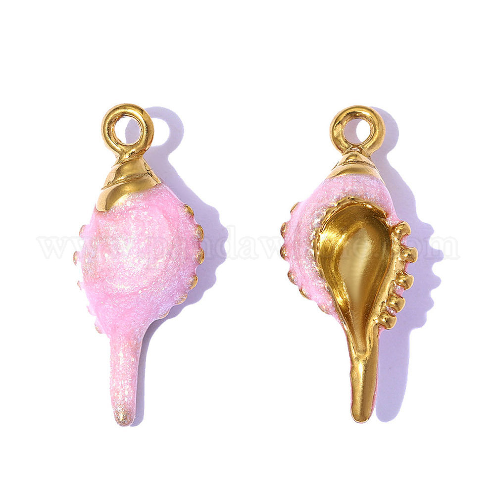 304 подвески из нержавеющей стали, с эмалью, раковины прелести, зеркальная полировка, ионное покрытие (ip), реальный 18 k позолоченный