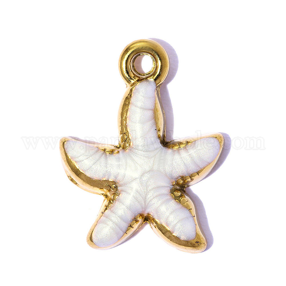• Белый 304 нержавеющей стальной эмали подвески, прелести морская звезда, ионное покрытие (ip), зеркальная полировка, реальный 18 k позолоченный, белые, 15x12 мм, отверстие : 1.6 мм