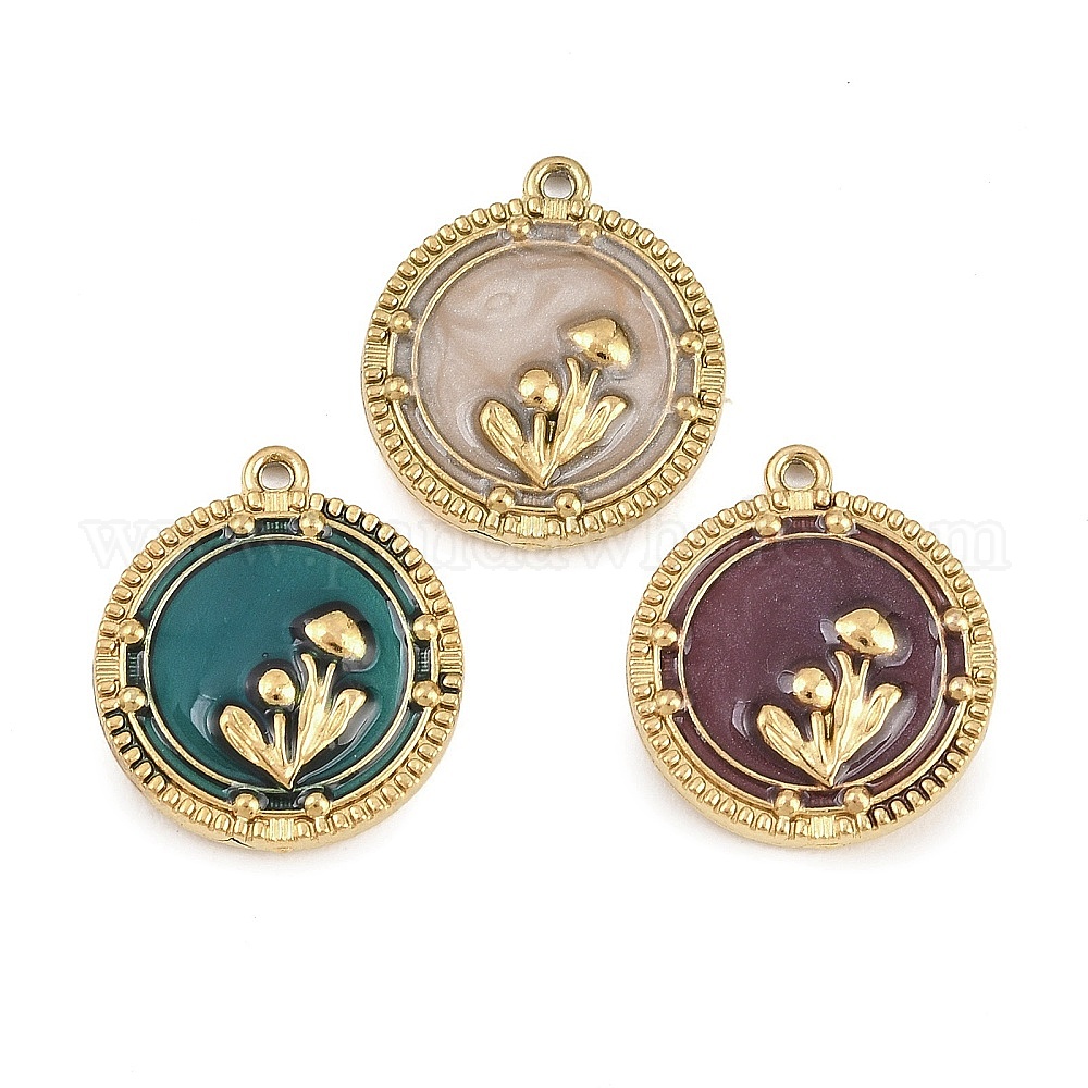 304 подвески из нержавеющей стали, с эмалью, плоская круглая форма с грибовидными подвесками, золотые