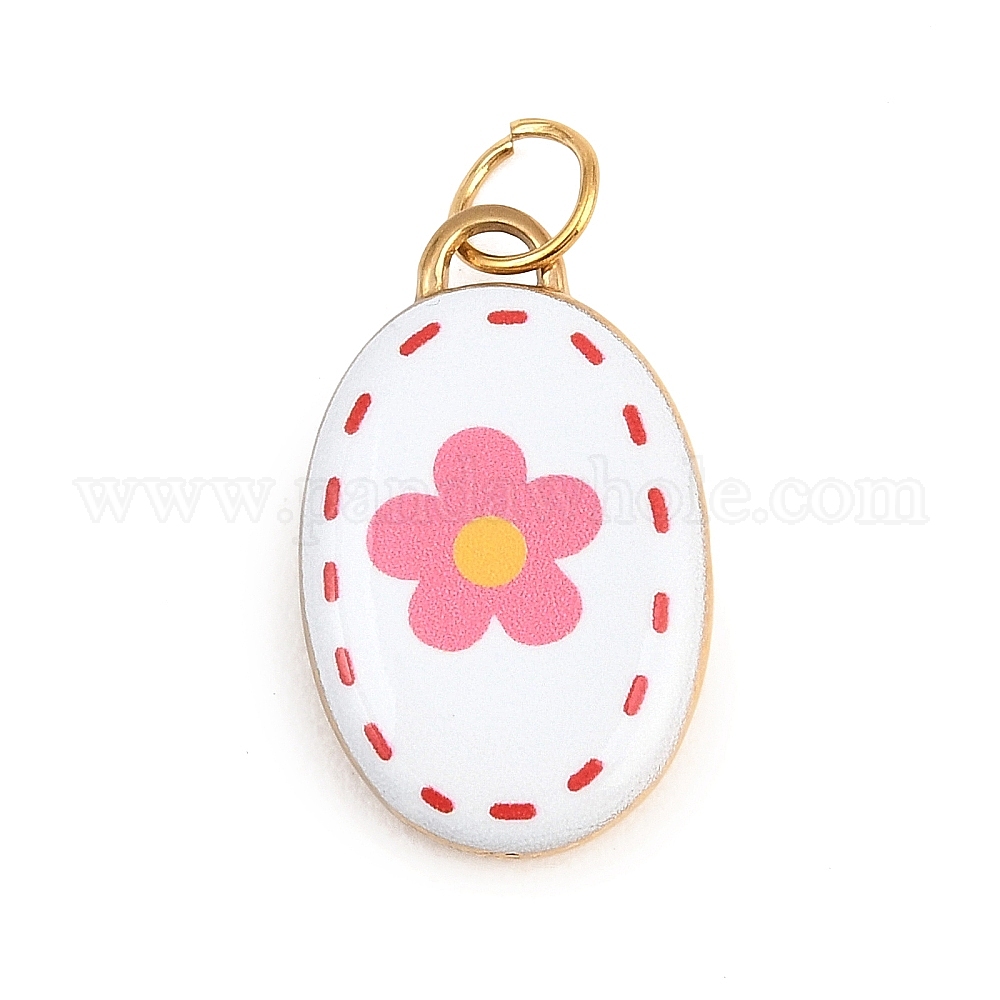 304 нержавеющей стальной эмали подвески, овал с цветочными подвесками, с целью перехода в кольце, золотые