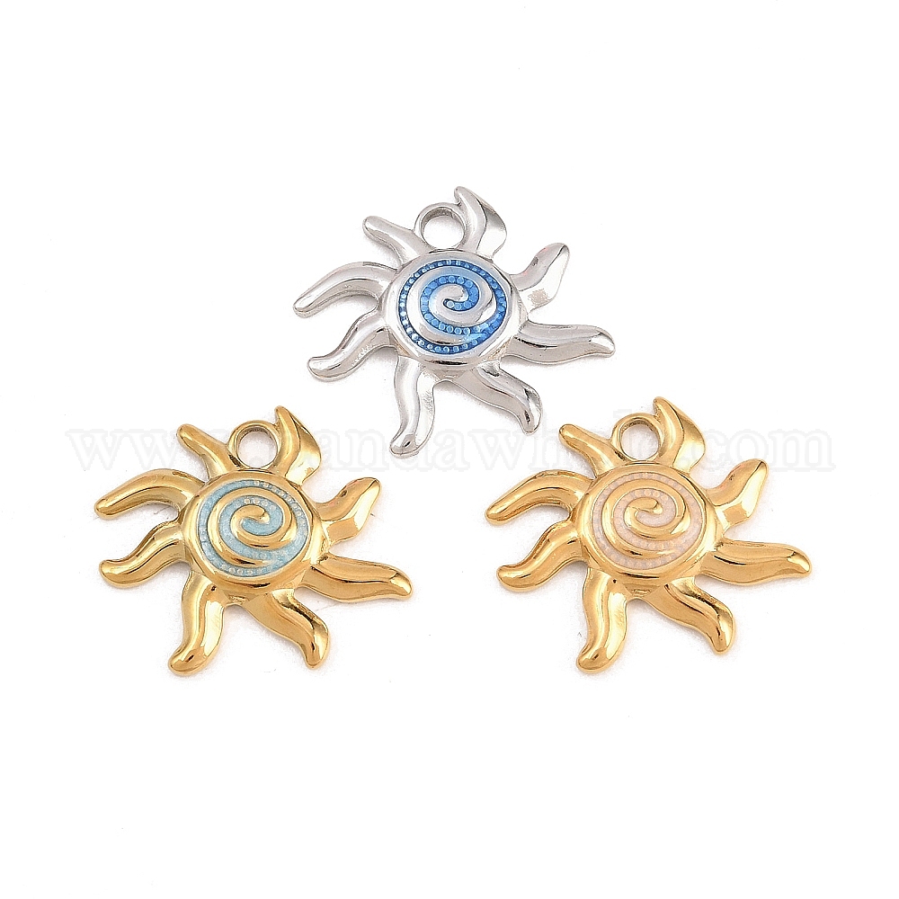 304 нержавеющей стальной эмали подвески, солнечные чары, ионное покрытие (ip), настоящее 18k позолоченное/цвет нержавеющей стали