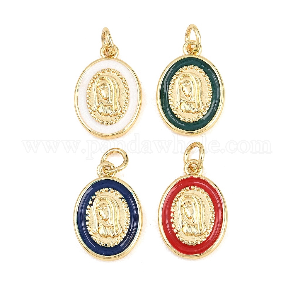 Латунные подвески, с эмалью, овал с подвесками Девы Марии, без кадмия и без свинца, реальный 18 k позолоченный