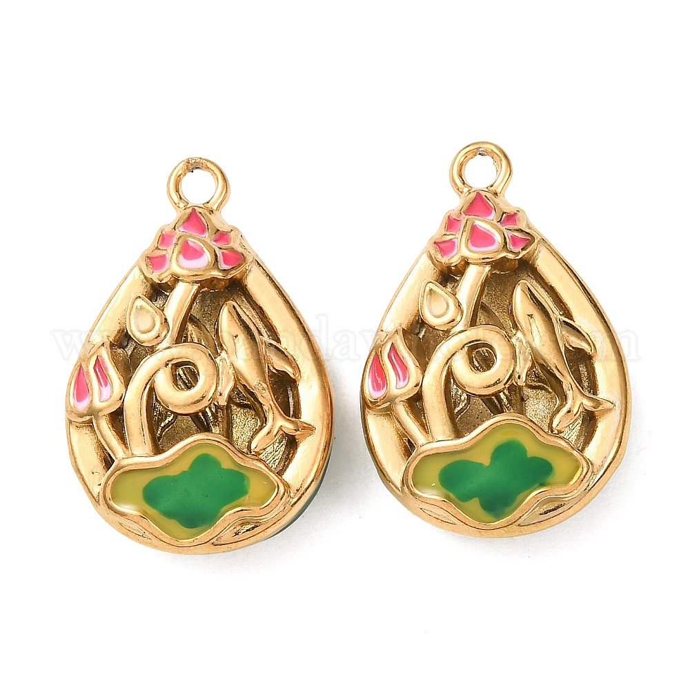 304 подвески из нержавеющей стали, с эмалью, ионное покрытие (ip), слезинка с подвесками в виде лотоса