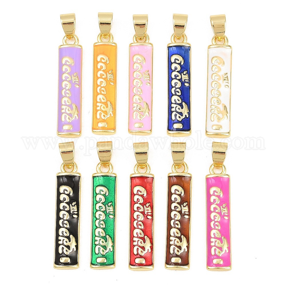 Латунь эмаль подвески, прямоугольник со словами-подвесками, реальный 18 k позолоченный