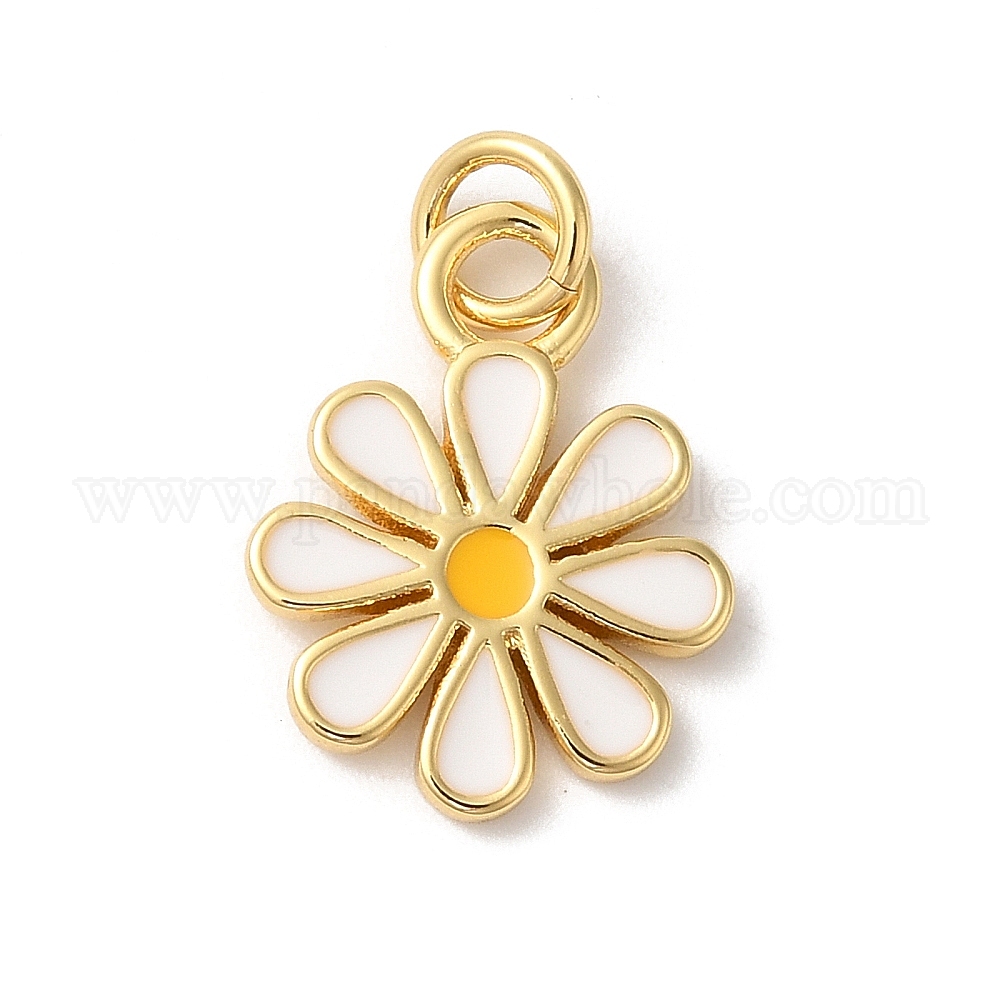 Подвески из латуни с эмалью в стойку, с целью перехода в кольце, долговечный, без кадмия и без свинца, цветочный шарм, реальный 18 k позолоченный