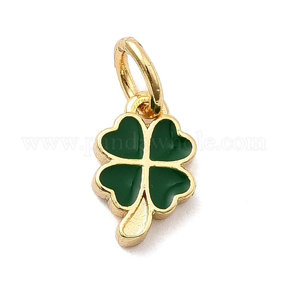 Латунь эмаль подвески, клевер амулеты, стойки покрытие, долговечный, без кадмия и без свинца, реальный 18 k позолоченный, с целью перехода в кольце