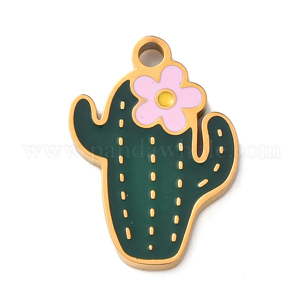 • Золотой 304 нержавеющей стальной эмали подвески, кактус с цветочными подвесками, золотые, 15.5x11x1.5 мм, отверстие : 1.5 мм